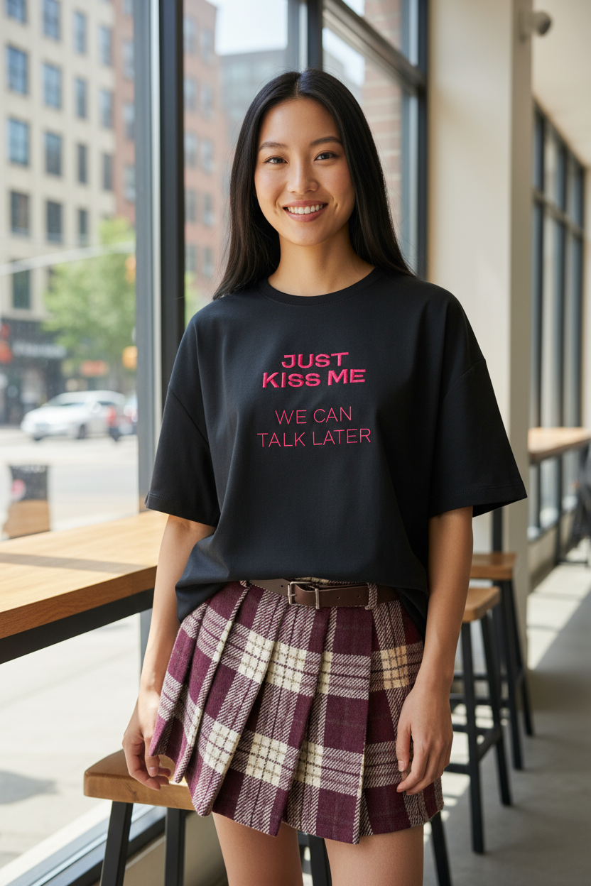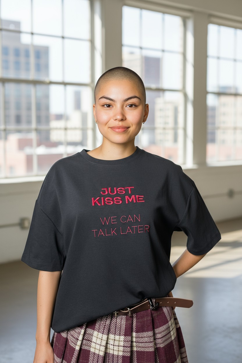 Short-sleeved shirt made of a cotton blend. It features a crew neck. Relaxed fit. Available in ONE size.